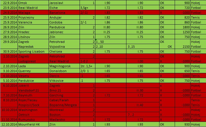 Říjen 2014 - Zisk/Ztráta při vkladu 1.000 = -3.770kč